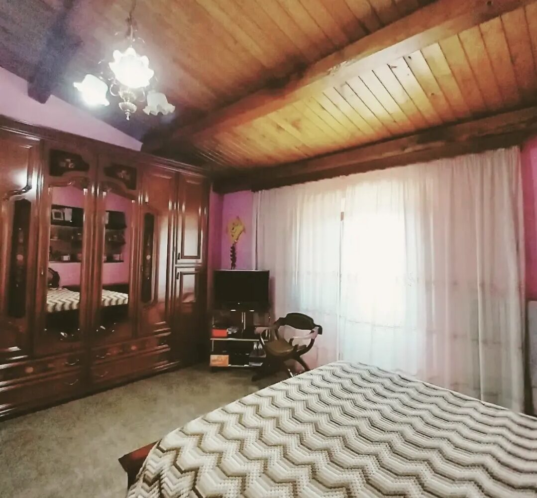 L abitazione, si presenta con lo spazio giorno e camino, zona cucina, tre camere da letto e due bagni; ha mantenuto qualche elemento originario come le travi a vista nella zona notte.